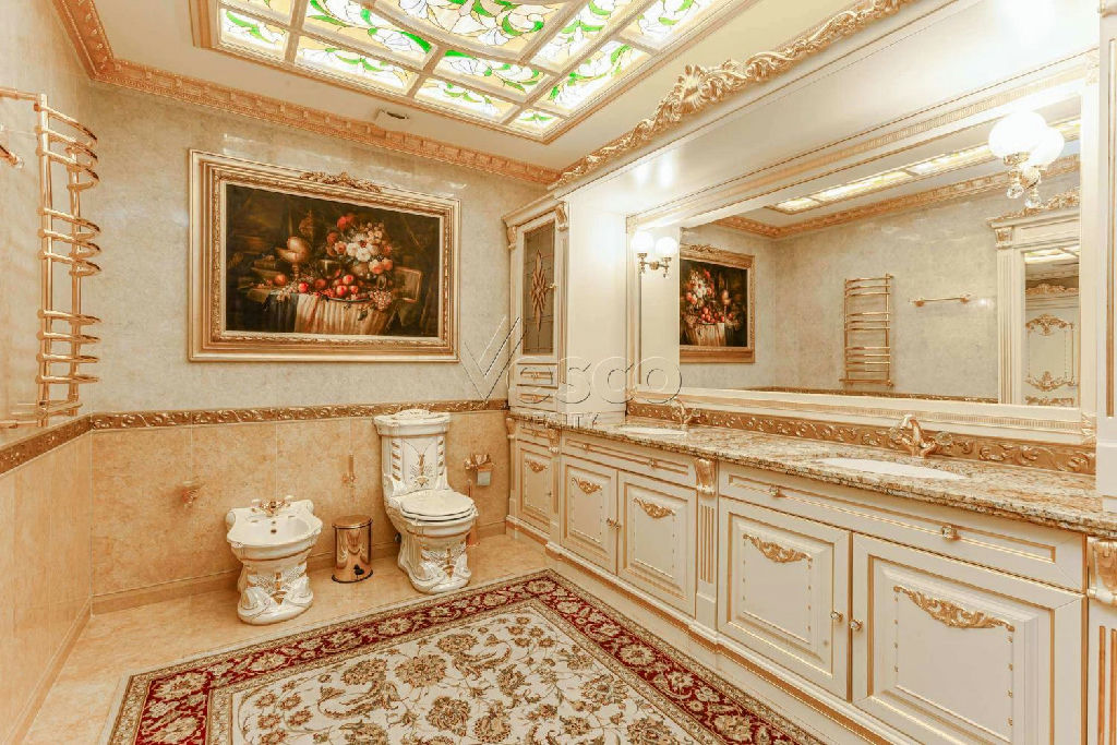 Квартира полностью готова к проживанию - меблирована и оборудована современной бытовой техникой. Межкомнатные двери, шкафы в спальнях, кухонный гарнитур, ванная комната позолочены сусальным золотом.